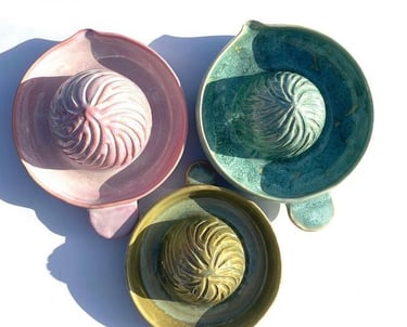 Grâce au Petit Monde, je dispose aujourd’hui d’un espace de travail agréable, et la céramique fait partie de mon quotidien. Je travaille principalement au tour, en créant des objets dits utilitaires. Je travaille au tour et essentiellement des objets "utilitaires". J’ai été conquise par la magie — ou plutôt la chimie — des émaux et grâce au stage de Recherche en Fabrication d'Emaux de Marc Uzan, je cherche et crée désormais mes propres recettes. J'aspire à des couleurs aux effets nébuleux, à des criques Marseillaises, des couchés de soleils provençaux, des nuits étoilées dans la garrigue, des plongées dans les calanques et d'oliveraies prêtes à être cueillies.