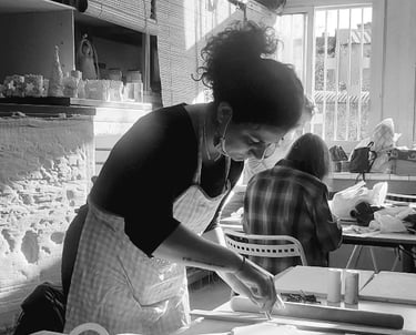 Grâce au Petit Monde, je dispose aujourd’hui d’un espace de travail agréable, et la céramique fait partie de mon quotidien. Je travaille principalement au tour, en créant des objets dits utilitaires. Je travaille au tour et essentiellement des objets "utilitaires". J’ai été conquise par la magie — ou plutôt la chimie — des émaux et grâce au stage de Recherche en Fabrication d'Emaux de Marc Uzan, je cherche et crée désormais mes propres recettes. J'aspire à des couleurs aux effets nébuleux, à des criques Marseillaises, des couchés de soleils provençaux, des nuits étoilées dans la garrigue, des plongées dans les calanques et d'oliveraies prêtes à être cueillies.